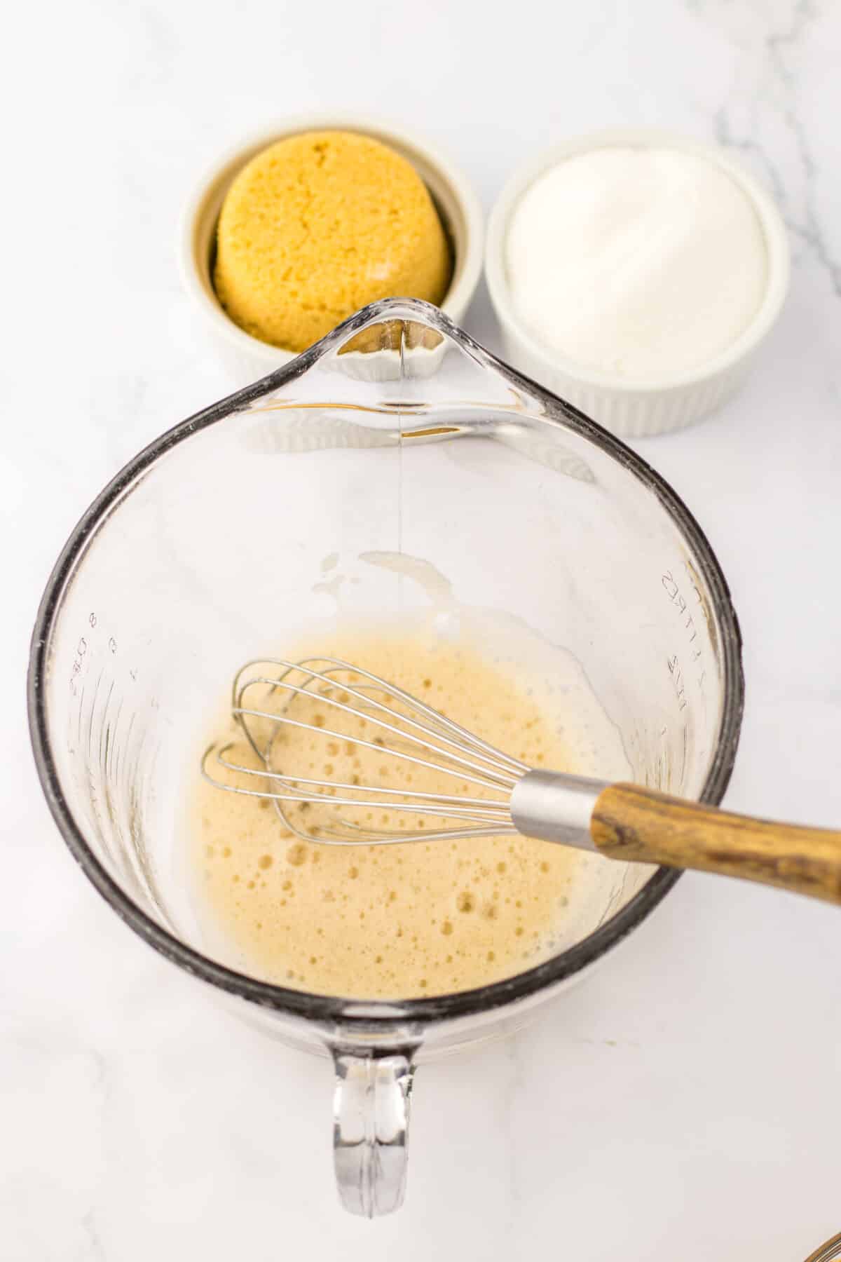 Mix sugar & spice: In a separate bowl, stir together brown sugar, granulated sugar, and cinnamon.