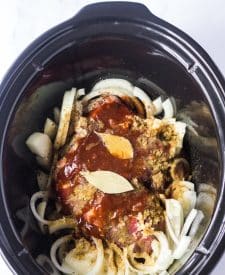 - You can sear the meat before adding to the slow cooker but it is not necessary.