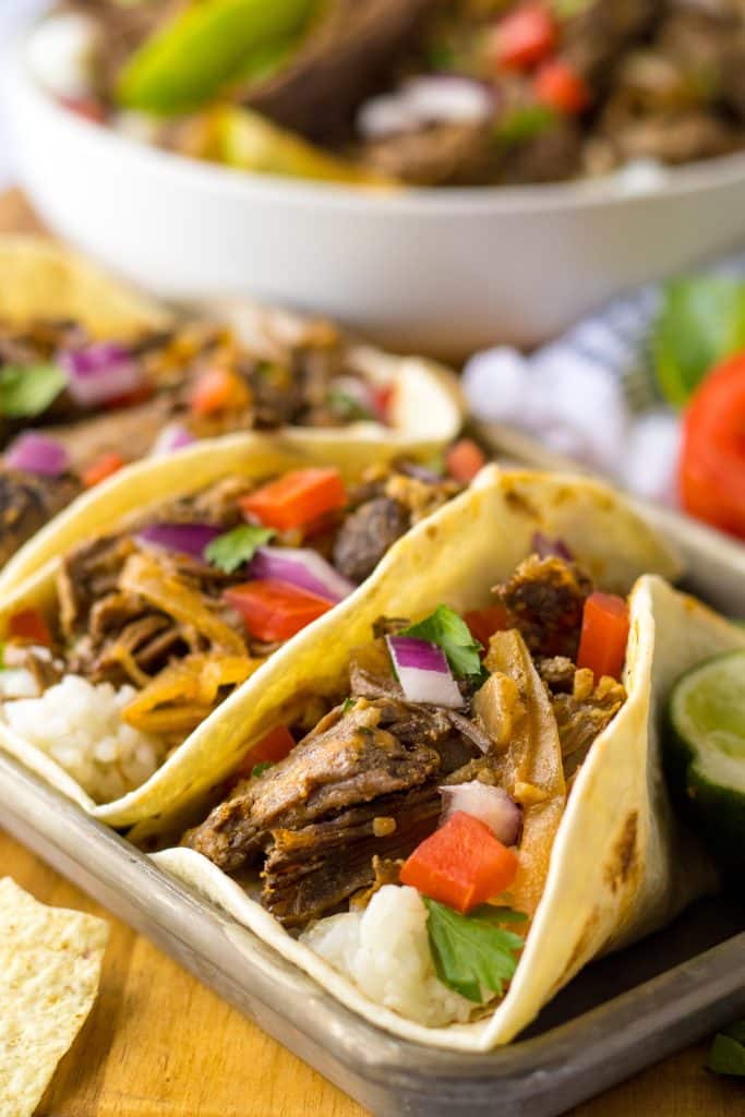 I love that I can just throw everything in the slow cooker and have a delicious, flavorful dinner that everyone loves. Whenever I find a dinner that everyone in my house eats I get excited! And for it to be in the slow cooker? That’s a double score! They can eat this flavorful beef any way they want, as burritos, burrito bowls, nachos, tacos, quesadillas, anything you like.