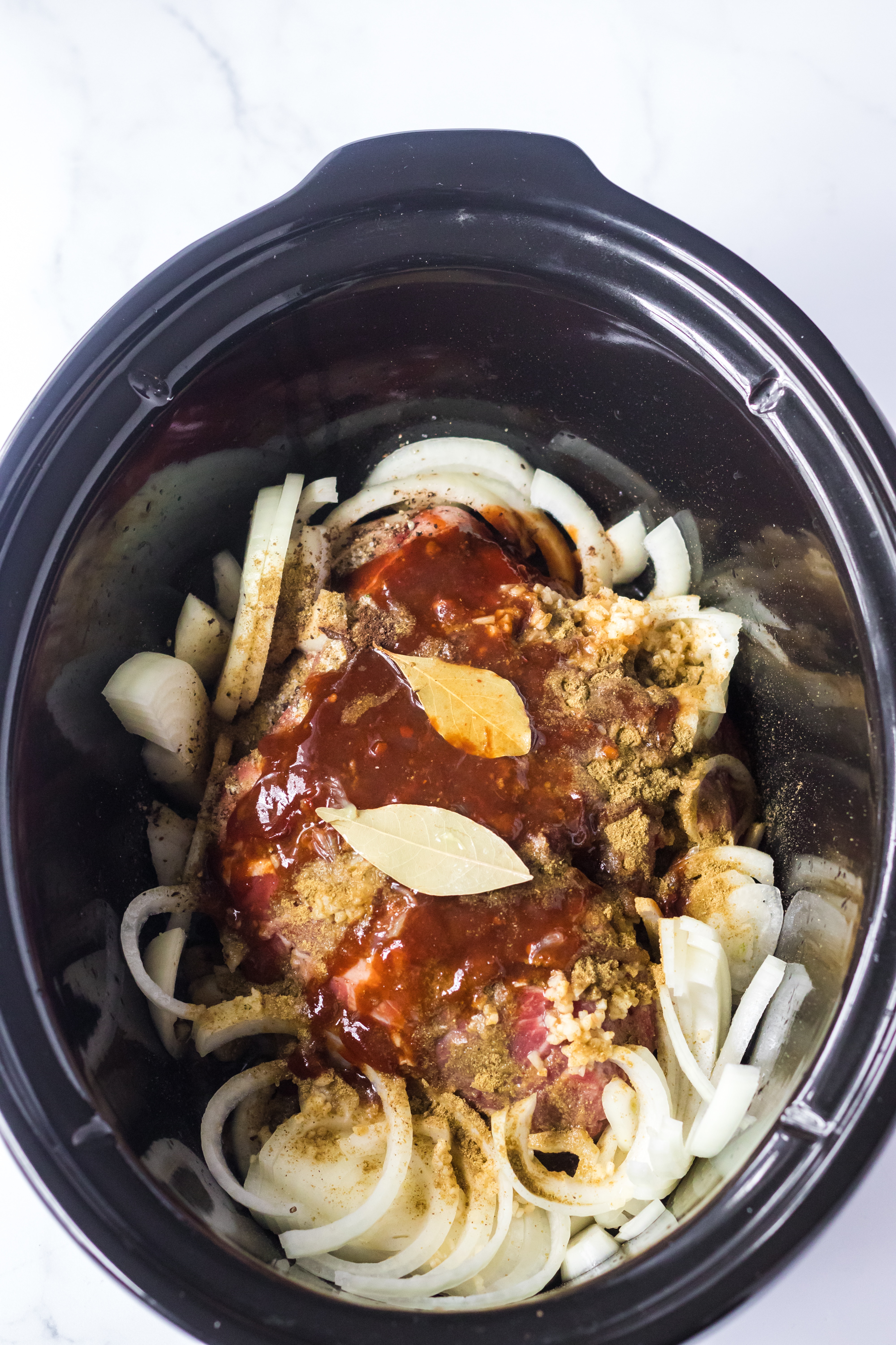 - If there is too much juice left at the end of cooking you can pour some off before adding the beef back to the slow cooker.