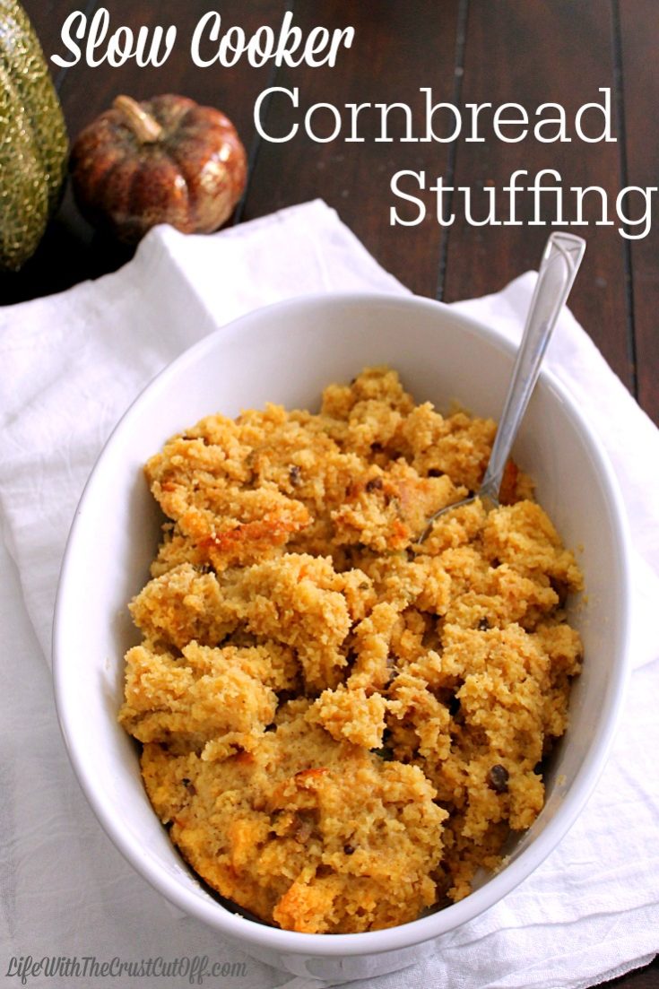 I was thinking…. what if I could make it in the slow cooker and save space in the oven for that big ol’ bird we gotta cook? Guess what guys? It works! And it is super yummy! Moist and fluffy and you still get some crispy edges, perfect!!!