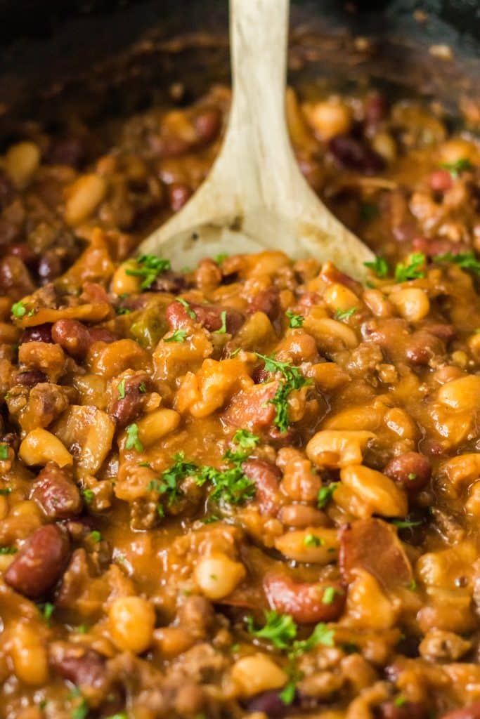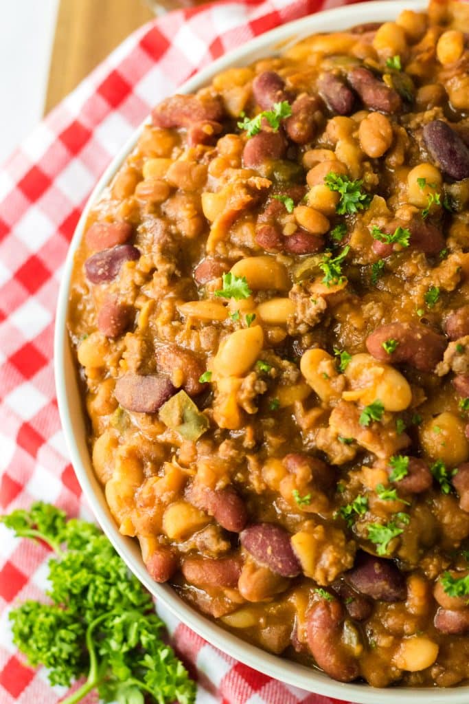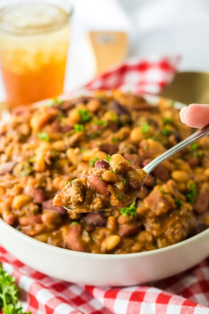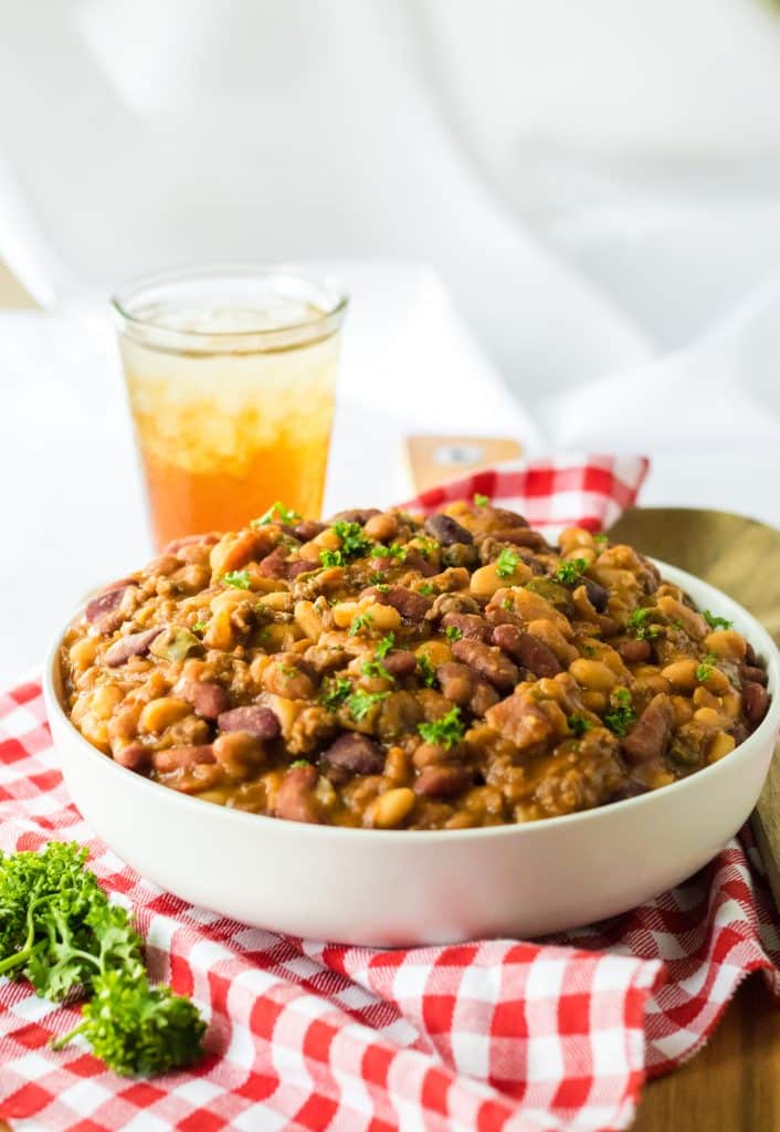 Can we also take a minute to talk about how budget-friendly this dish is? Everyone is feeling the pinch with the grocery bill right now and you can’t get much cheaper than a variety of beans and they help stretch that bacon and beef and make enough beans to feed a crowd! Such a great recipe.
