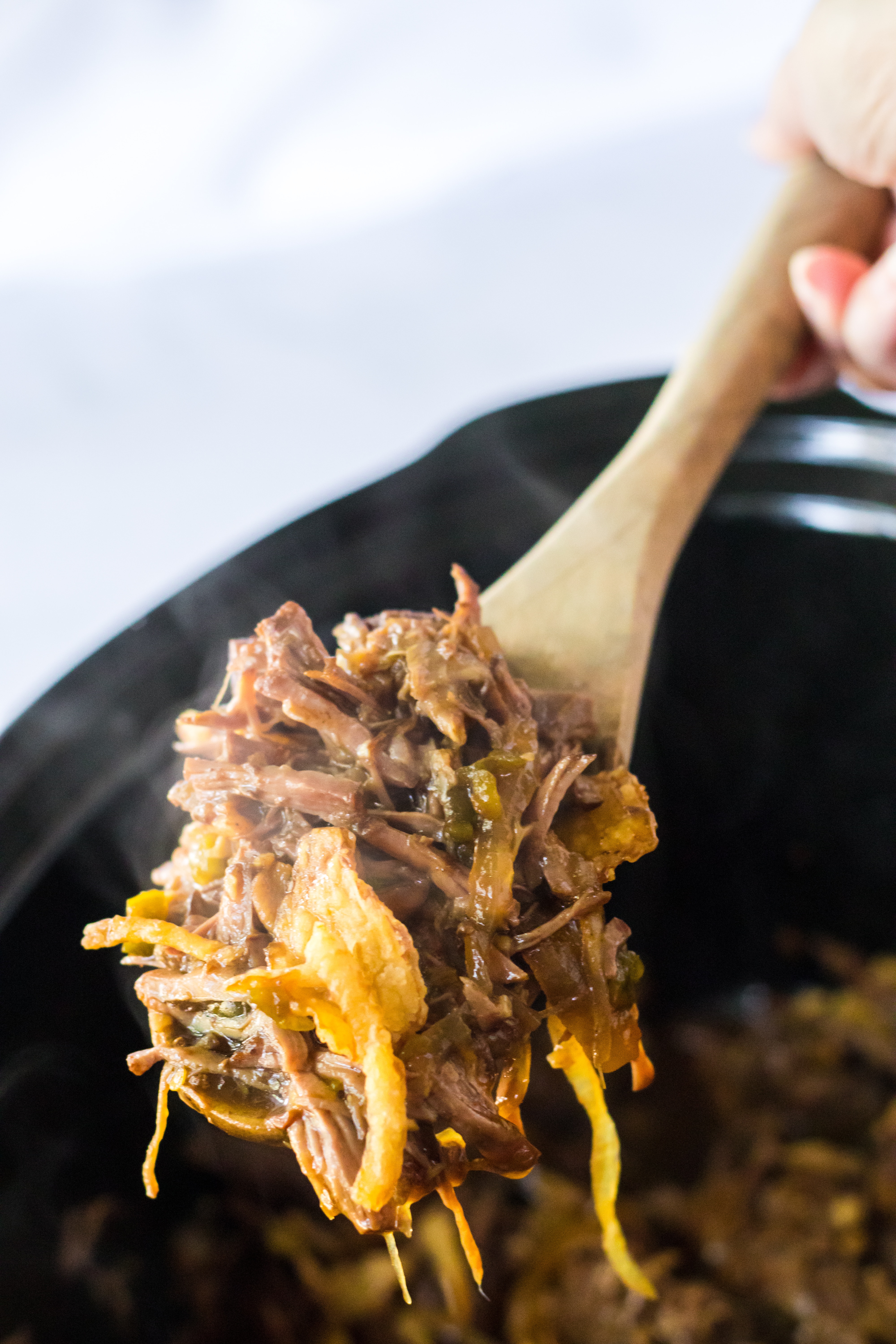 - Drain most of the liquid from the slow cooker.