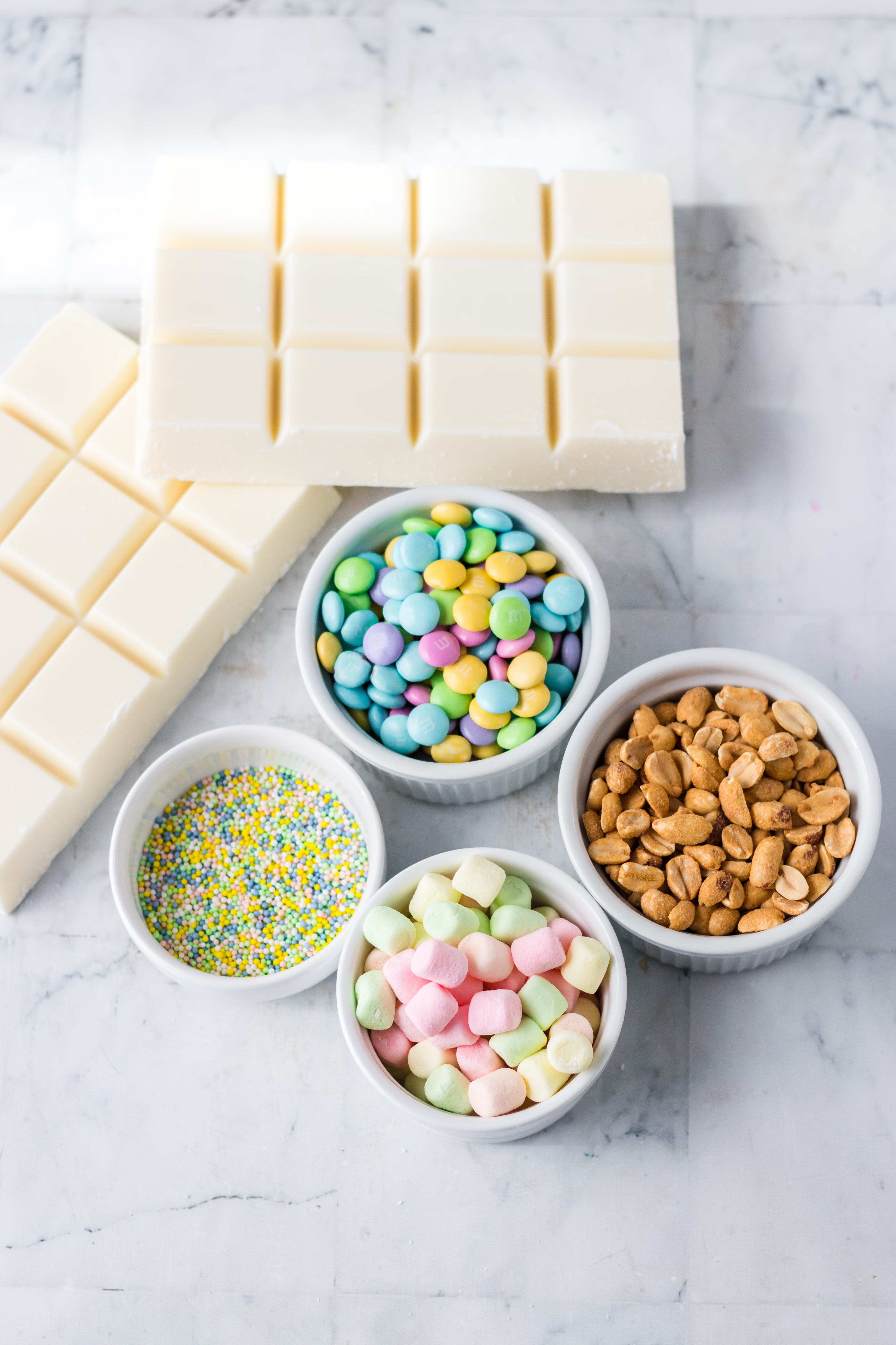 - Easter Egg Bark — Melted chocolate topped with festive candies for a quick and fun treat the kids can help make