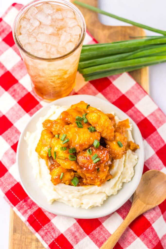 I love this over mashed potatoes or white rice but is also great over fried rice or lo mein noodles. I like to serve it with some broccoli or green beans.