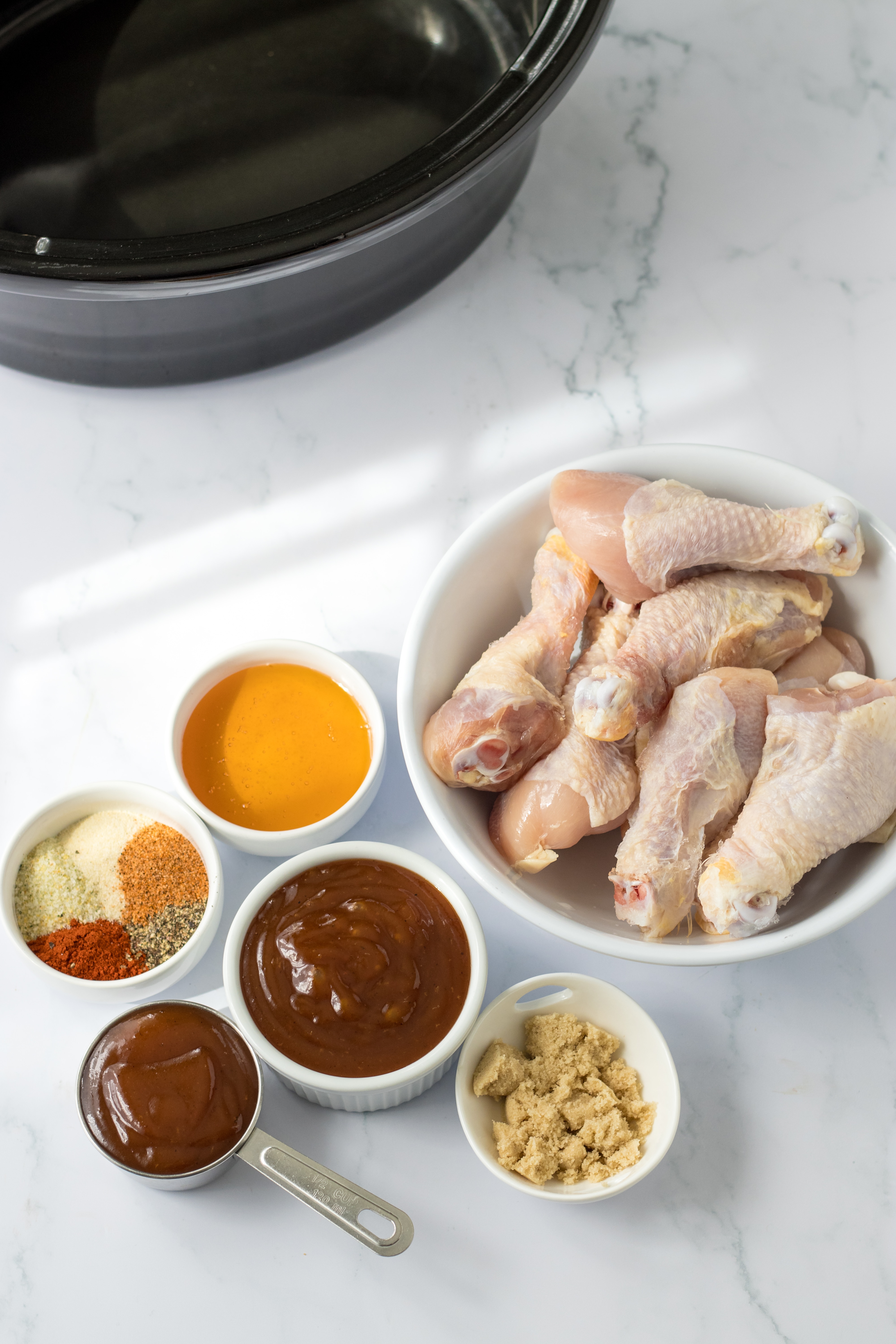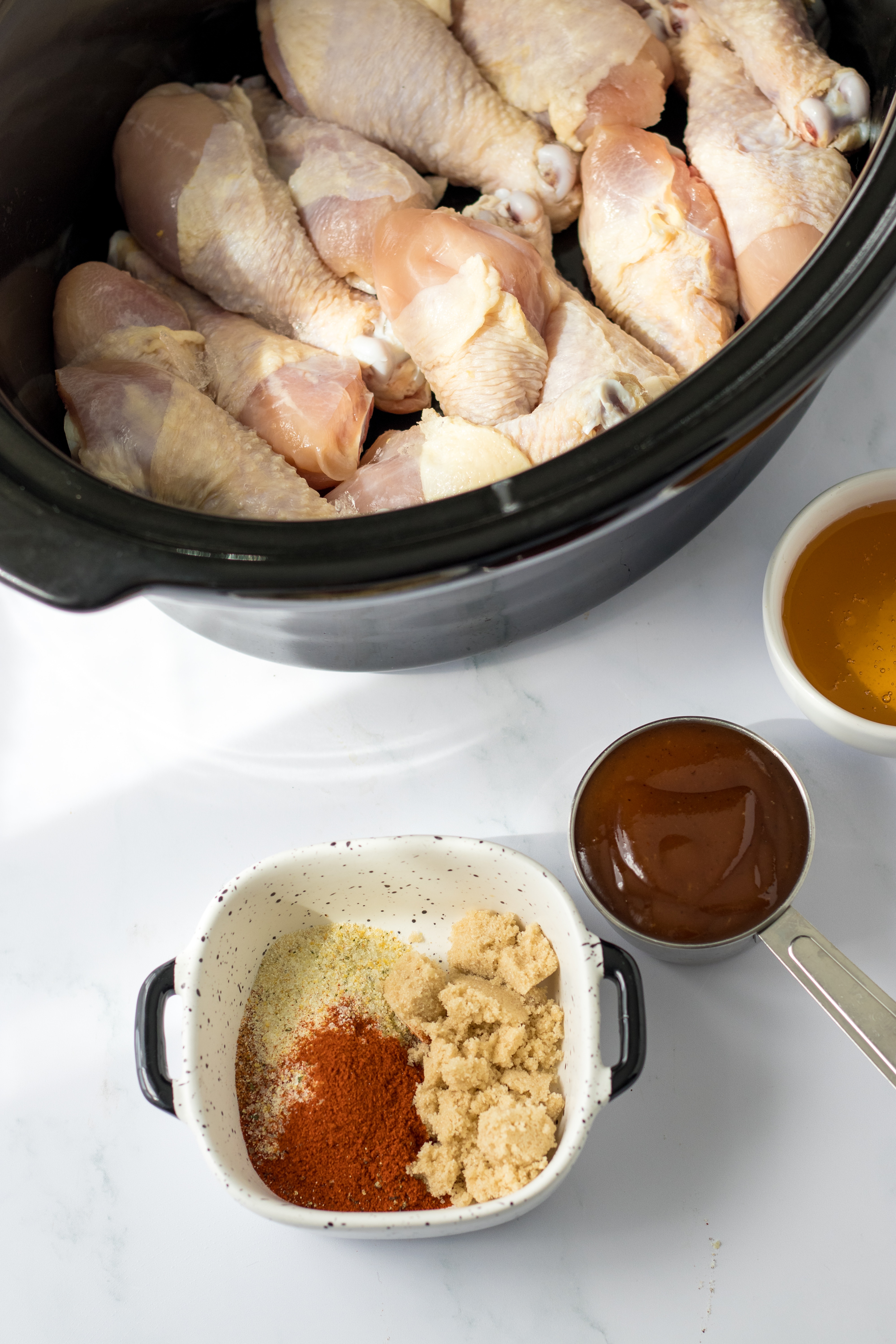 - Place all your drumsticks in your slow cooker.