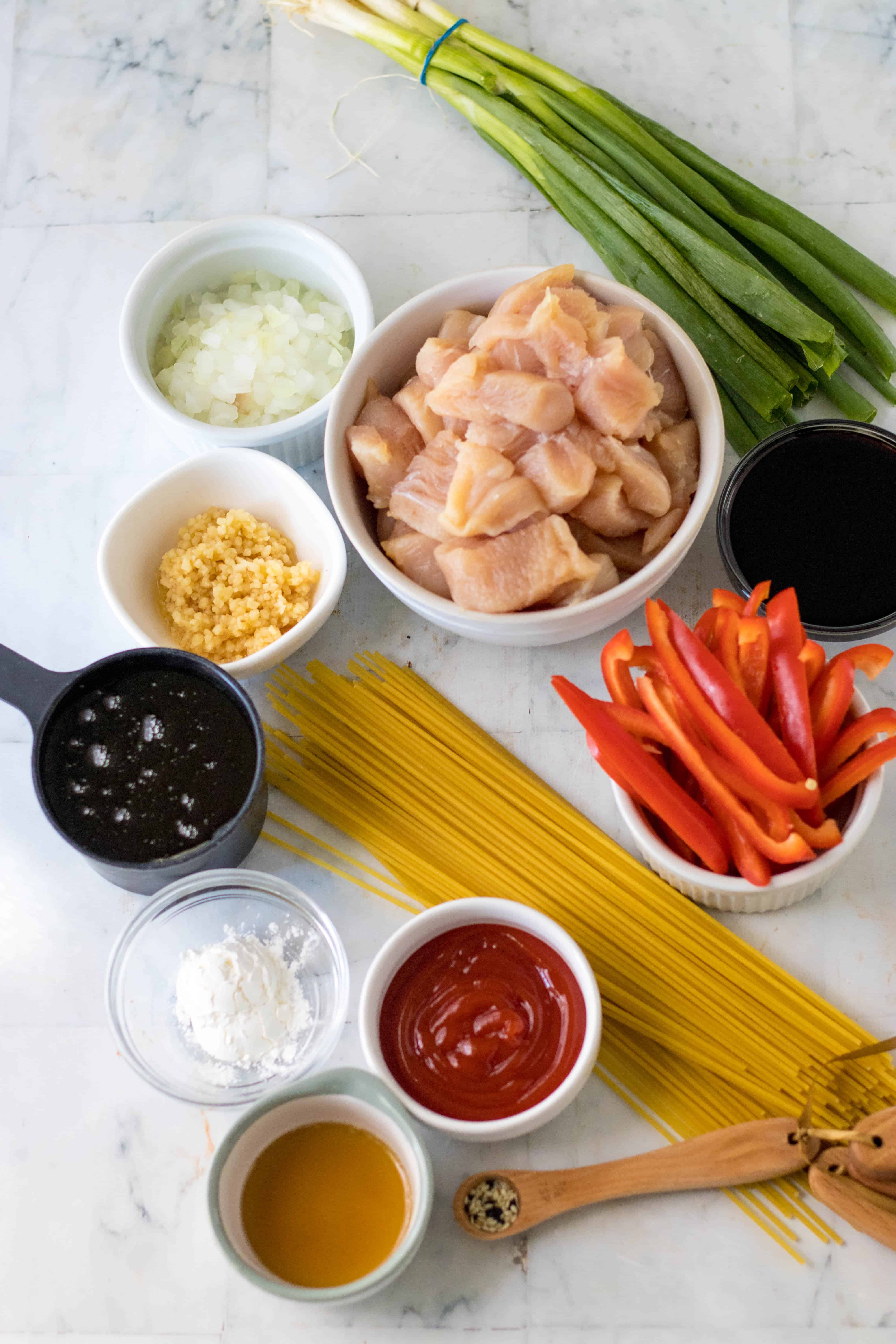 If you notice your sauce is too thick when you go to add the noodles you can add 1/2 cup of water or chicken stock.  If your sauce ends up too thin you can add more cornstarch and water mixed.