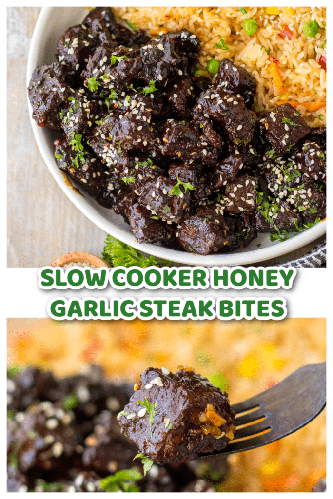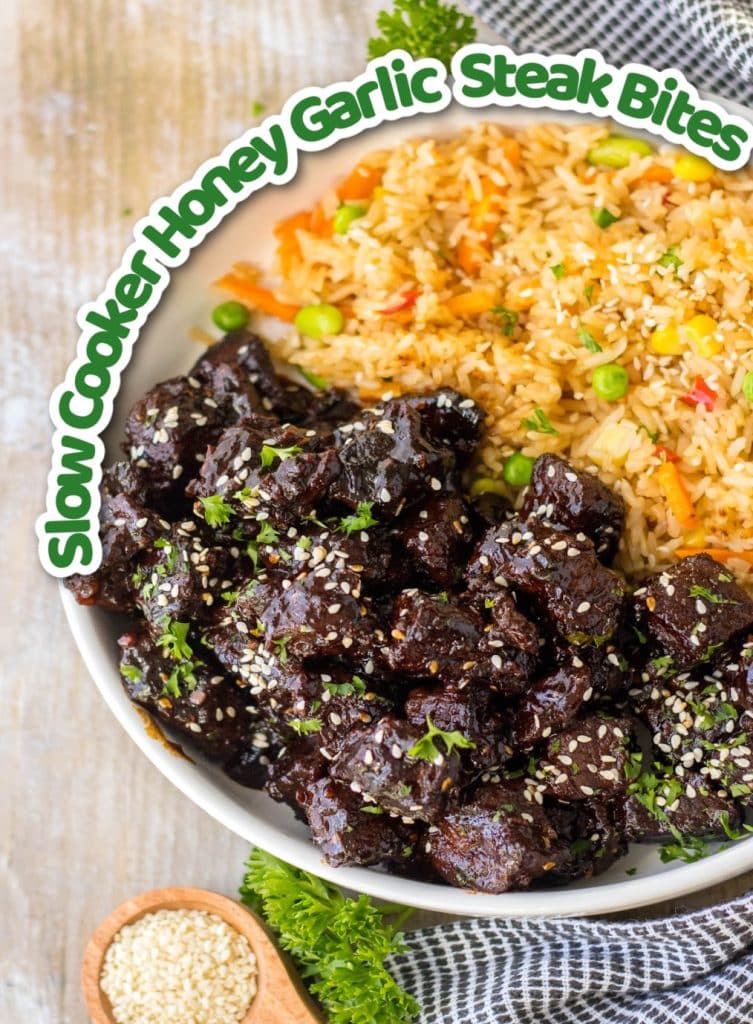 Slow Cooker Honey Garlic Steak Bites are a delicious and flavorful dinner that will be a hit with your family!
