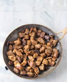 - Add the stew beef and cook until nicely brown on each side. We are not looking to cook the meat through, just brown the outside.