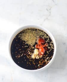 - Combine the garlic, honey, ketchup, soy sauce and oregano together and pour over the meat.