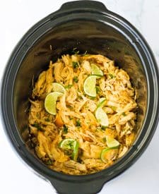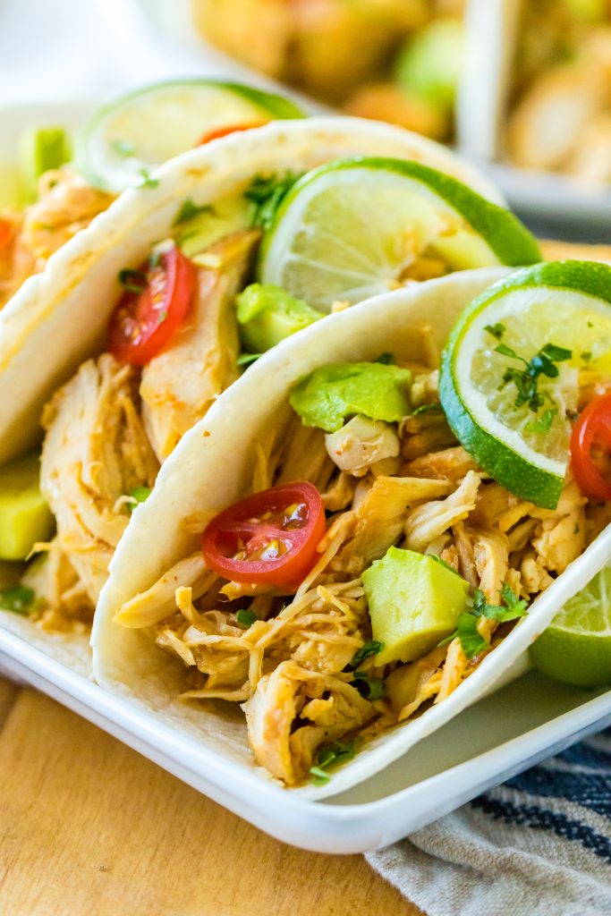 This chicken cooks in a flavorful sauce until it is nice and tender. Then you just shred it up to make these delicious tacos but we love it just as amazing burritos, nachos or even quesadillas.