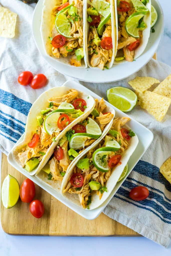 All you need to make these delicious tacos are chicken, honey, lime, garlic, broth, paprika and fajita seasoning. Then just pile it up on fluffy tortillas and dinner is done!