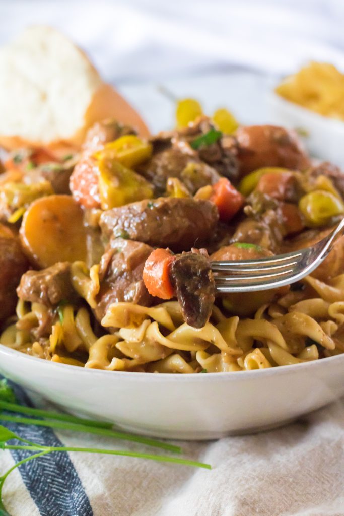 Everyone is feeling the pinch with the grocery bill right now and you can’t get much cheaper than stew beef and a few other ingredients. So this is a fabulous dinner when you are trying to save a few pennies and it makes a ton! The leftovers are amazing!