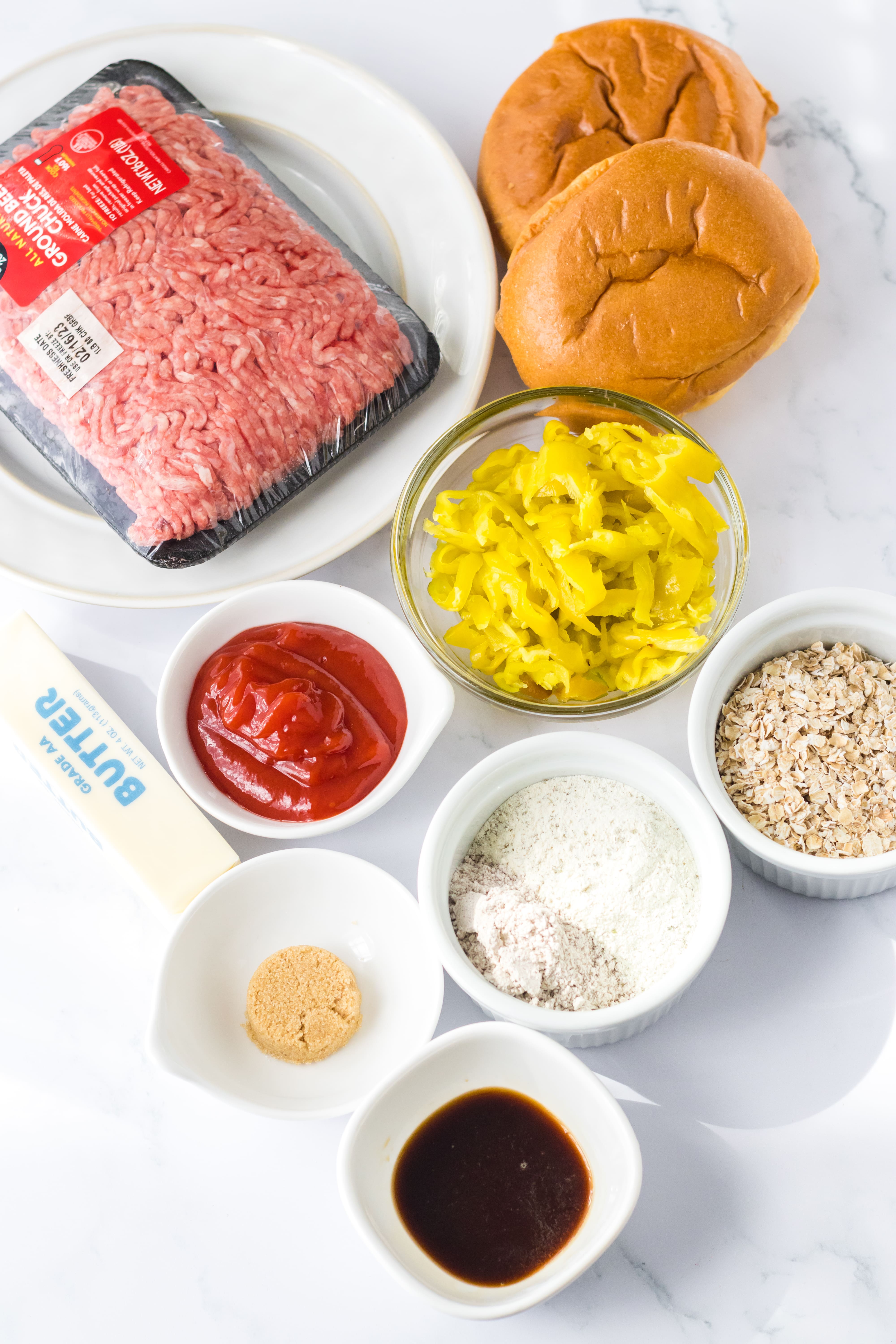 these are perfect for a quick dinner or any get-together. Ground beef, ranch mix, brown gravy mix, sliced pepperoncinis and butter make up these delicious sloppy joes with a secret ingredient that keeps them from being too sloppy!