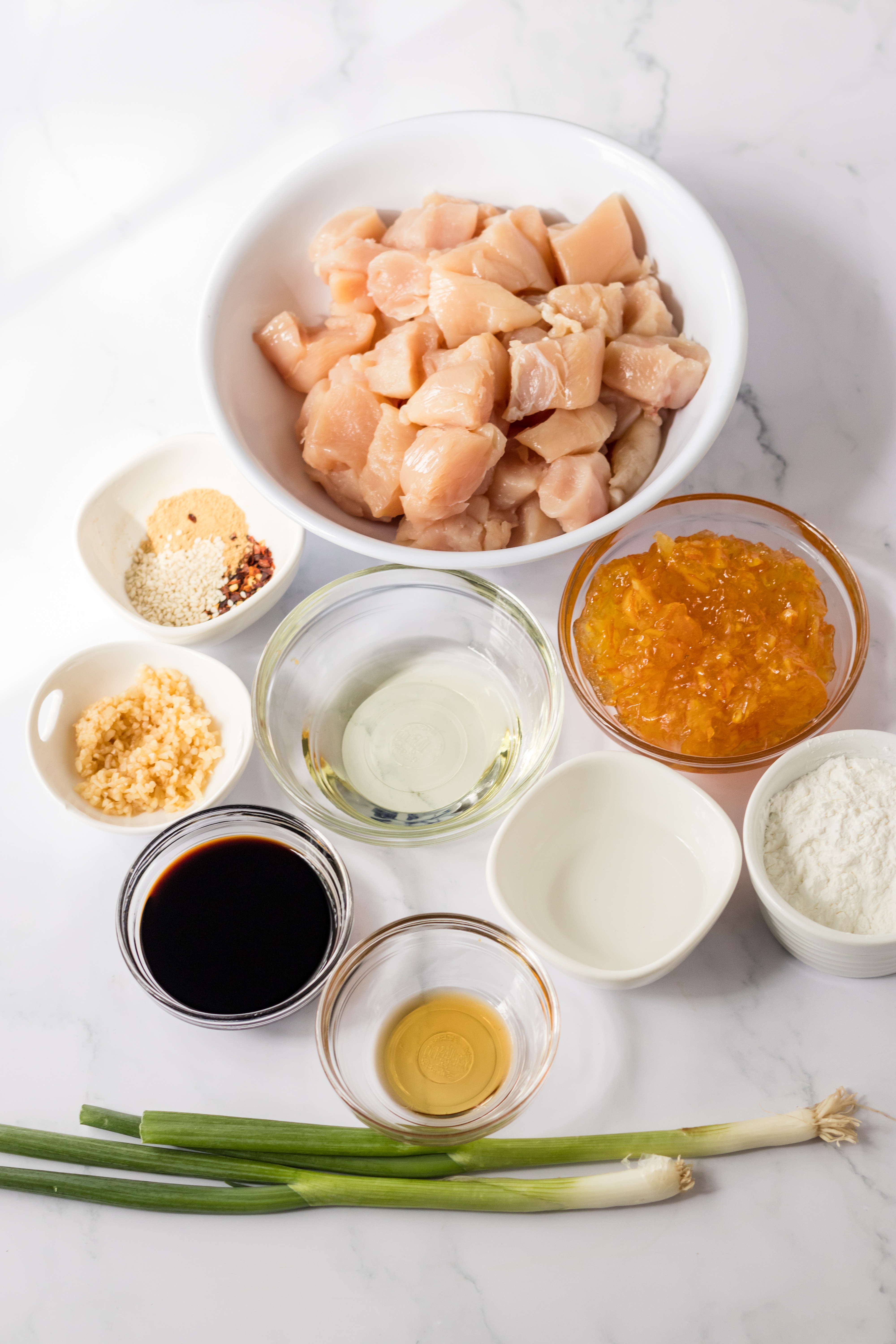Crispy chicken cooks up nice and tender in a sweet sticky orange sauce made with simple ingredients.