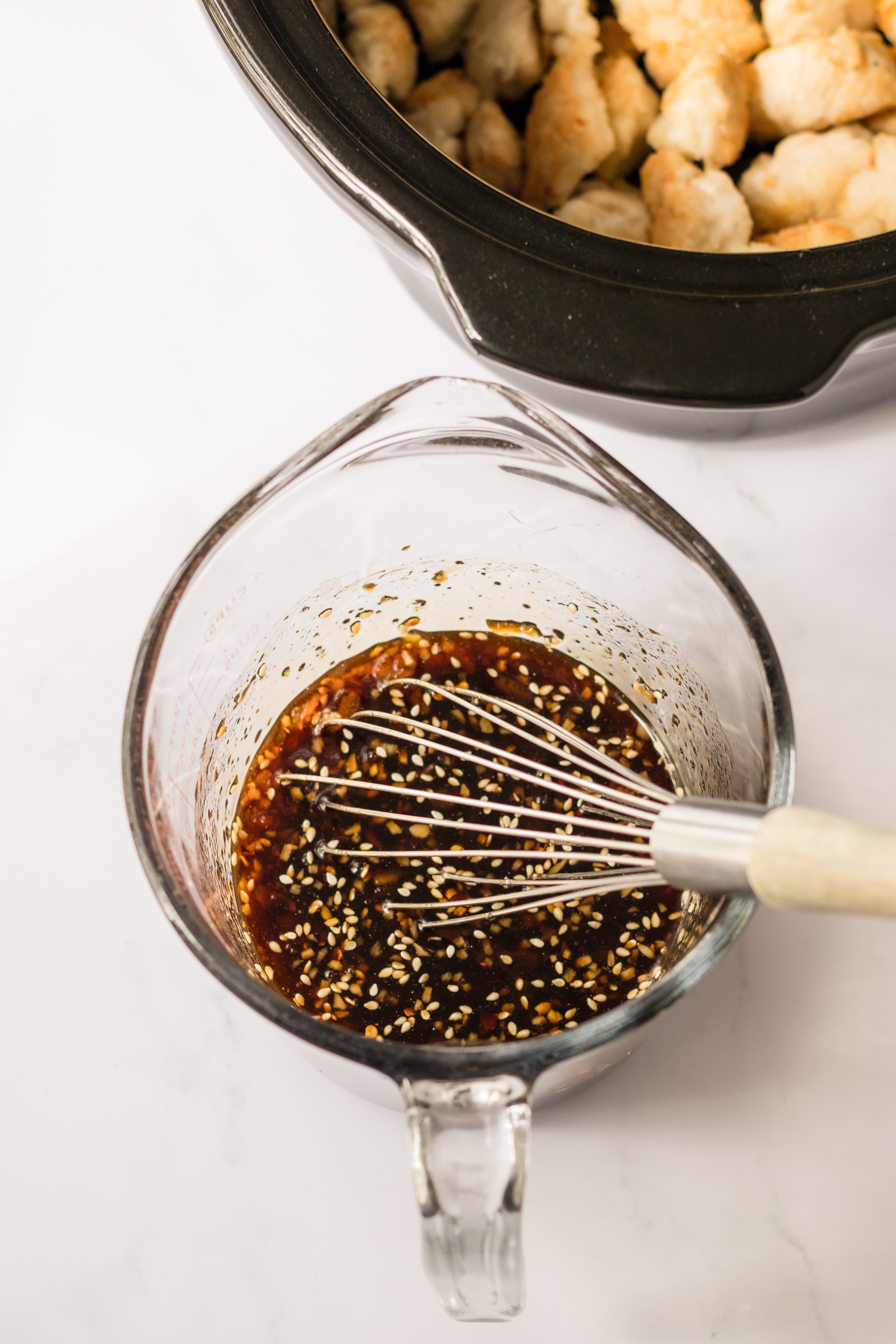 - Combine the marmalade, soy sauce, vinegar, sesame oil, ginger, garlic, red pepper flakes and sesame seeds.