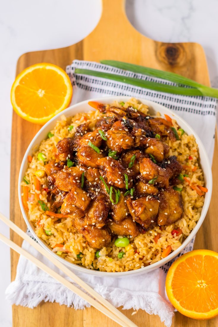 And let me tell you, just like takeout this makes for some incredible leftovers. That is the best part of take out right? The leftovers! This chicken is a crowd-pleaser and really family-friendly, even my kids can’t get enough of this chicken. This is even great next day leftover. The sticky sauce is perfect over rice and veggies and makes this dish!