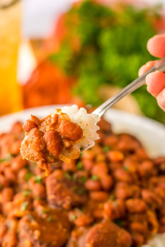 Traditionally andouille sausage is used and I like to use that as it adds a lot of flavor to the beans. Some brands can be a little spicy and if you are sensitive to spice you can certainly substitute just a regular smoked sausage. You can also use turkey or chicken sausage as well.