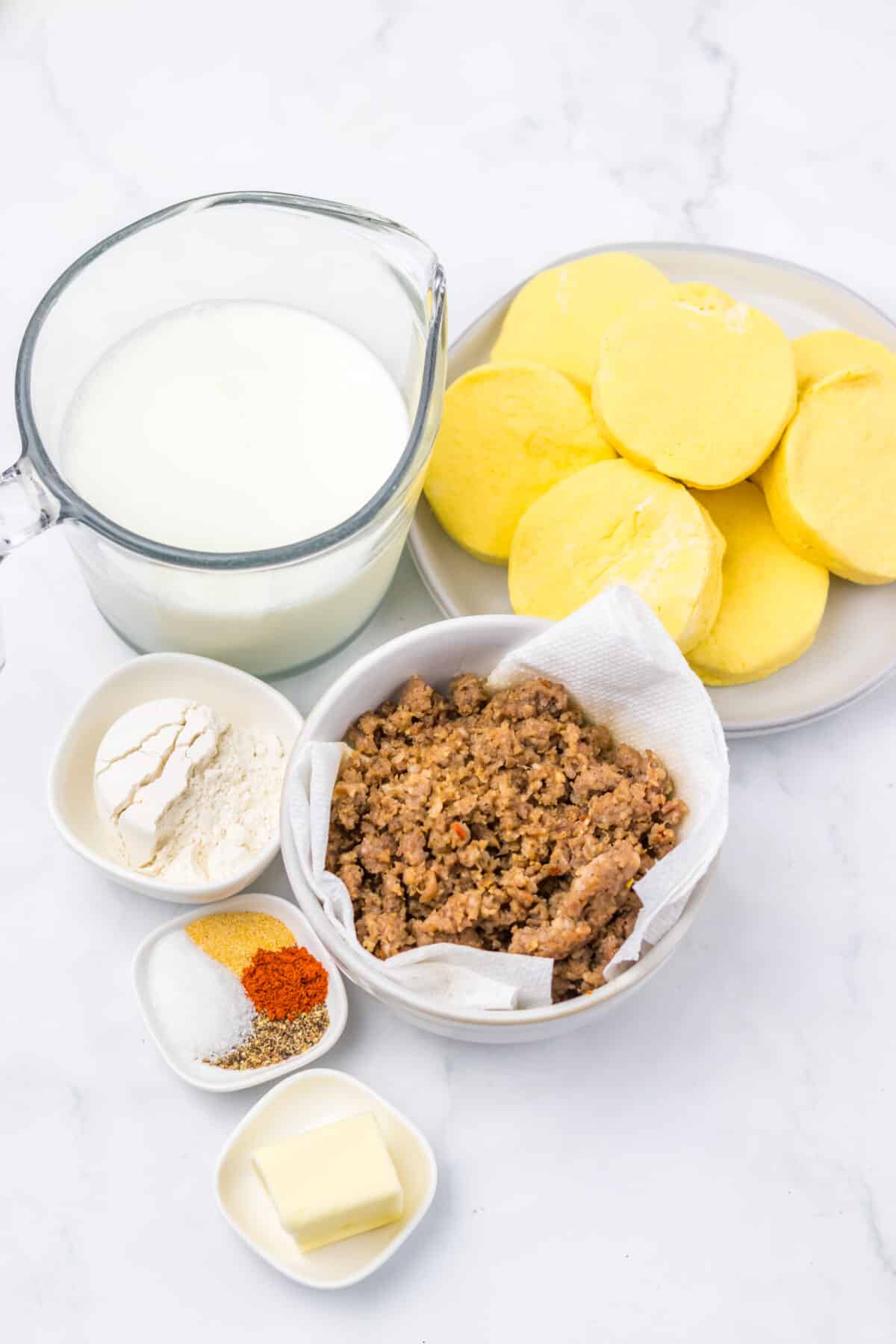 Breakfast sausage gives the gravy its rich flavor. Mild sausage works great, but spicy sausage adds a little kick.