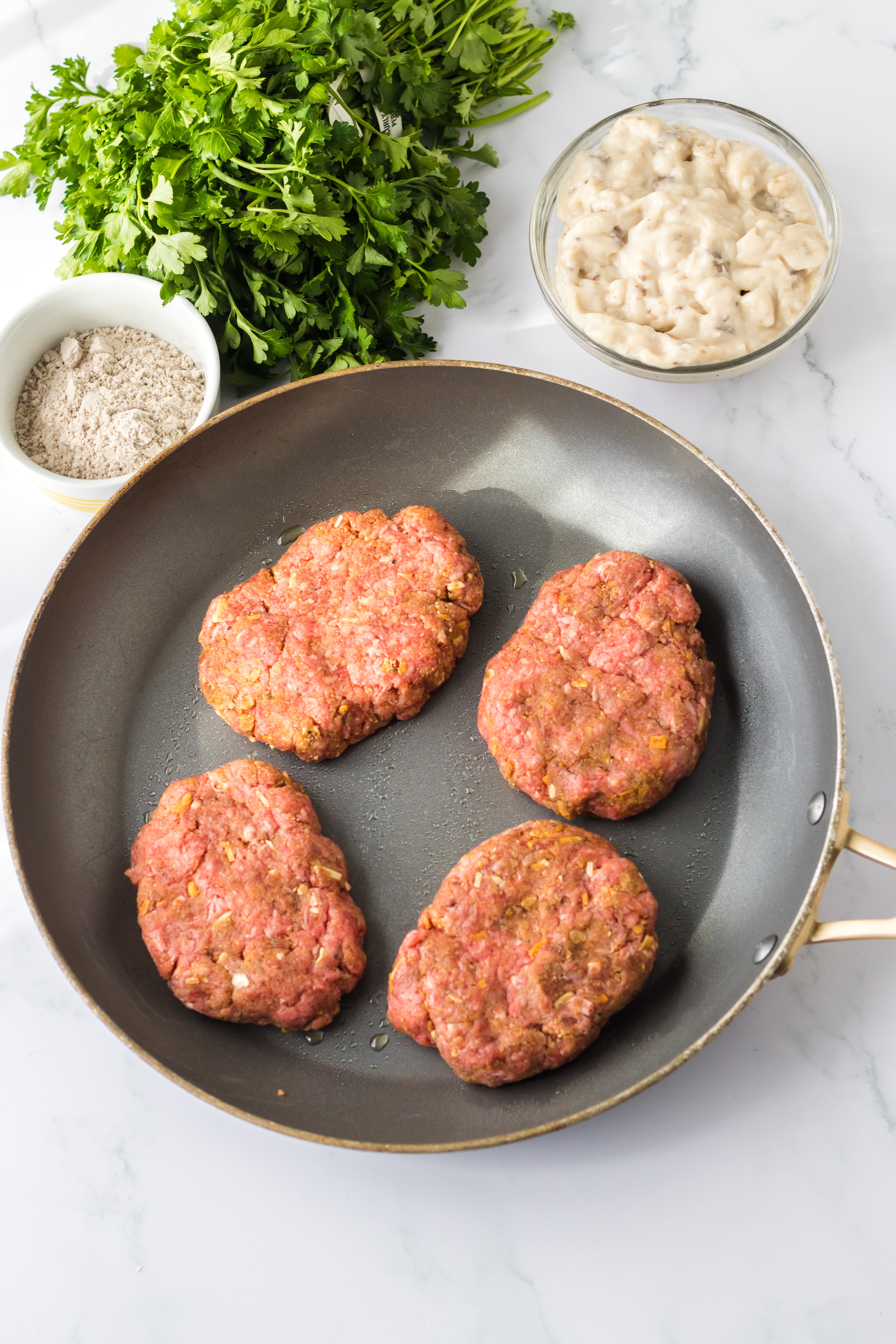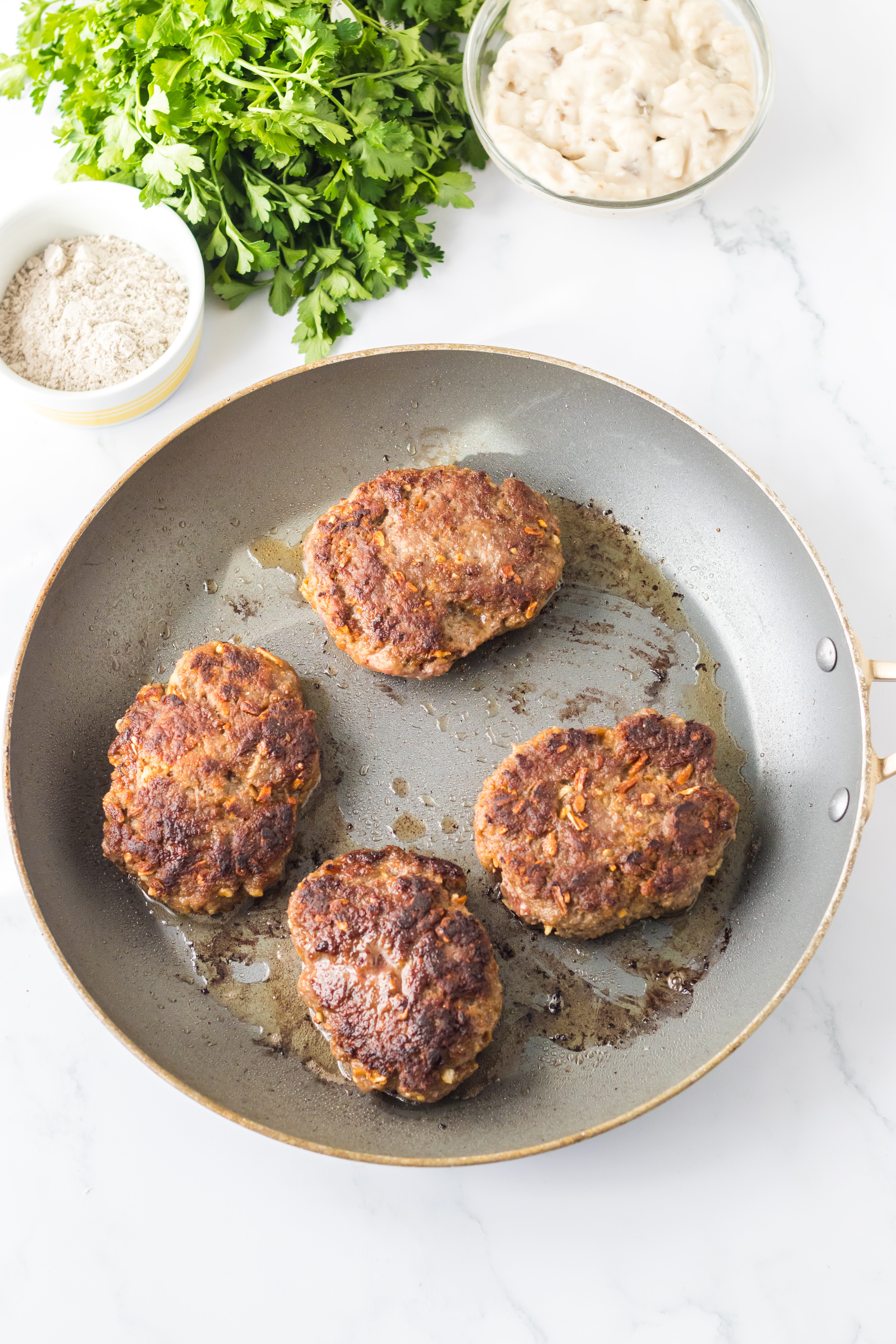 These tender beef patties are amazing on pile of creamy mashed potatoes with some roasted carrots. But we also love them over egg noodles or white rice, they make the perfect bed for the rich gravy.