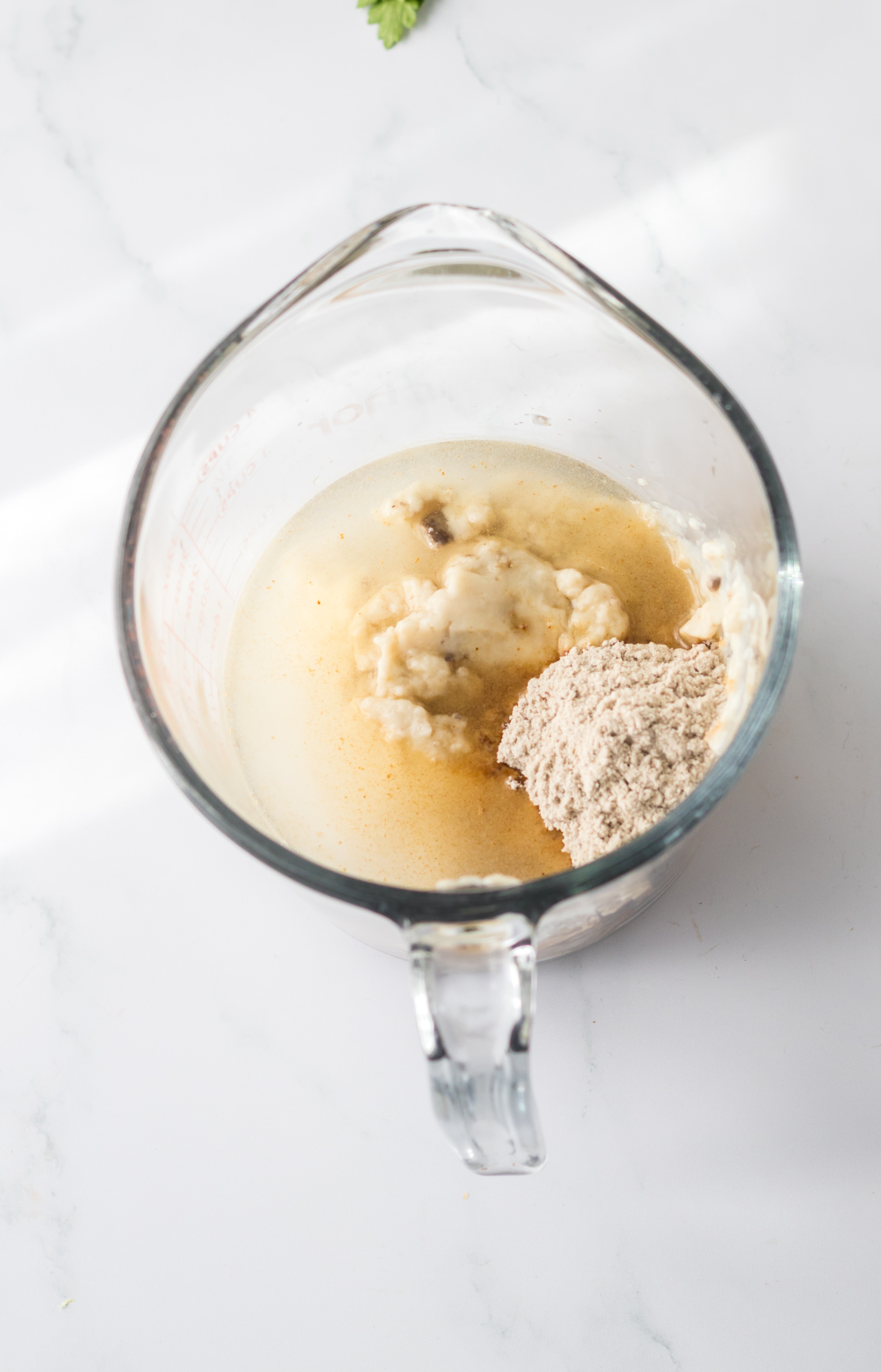 - Cream of mushroom soup- Gives the gravy it’s base.