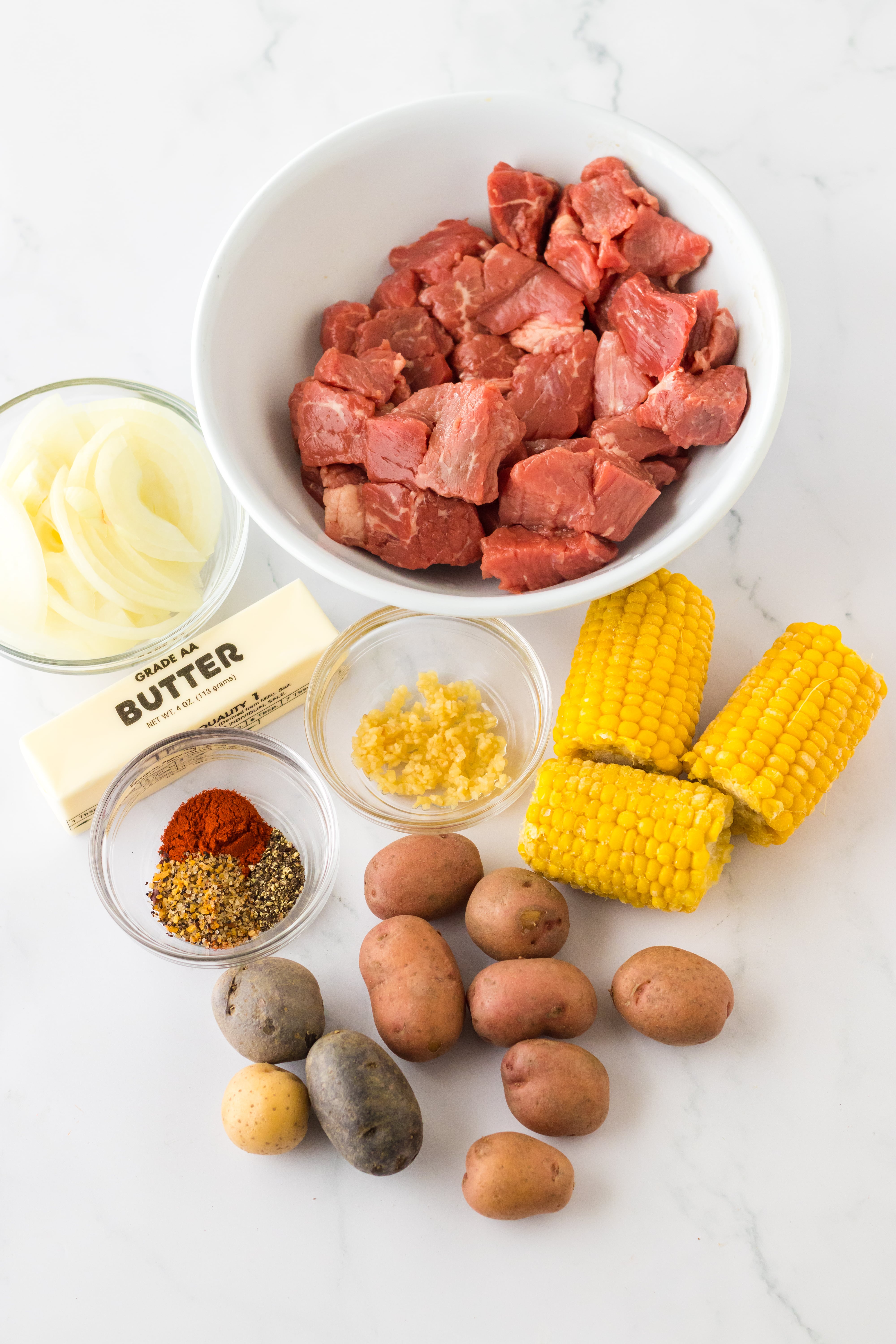 The steak, potatoes and corn cook up so tender and flavorful. This cooks up in a buttery, savory sauce made with butter and seasoning so everything is perfectly seasoned.