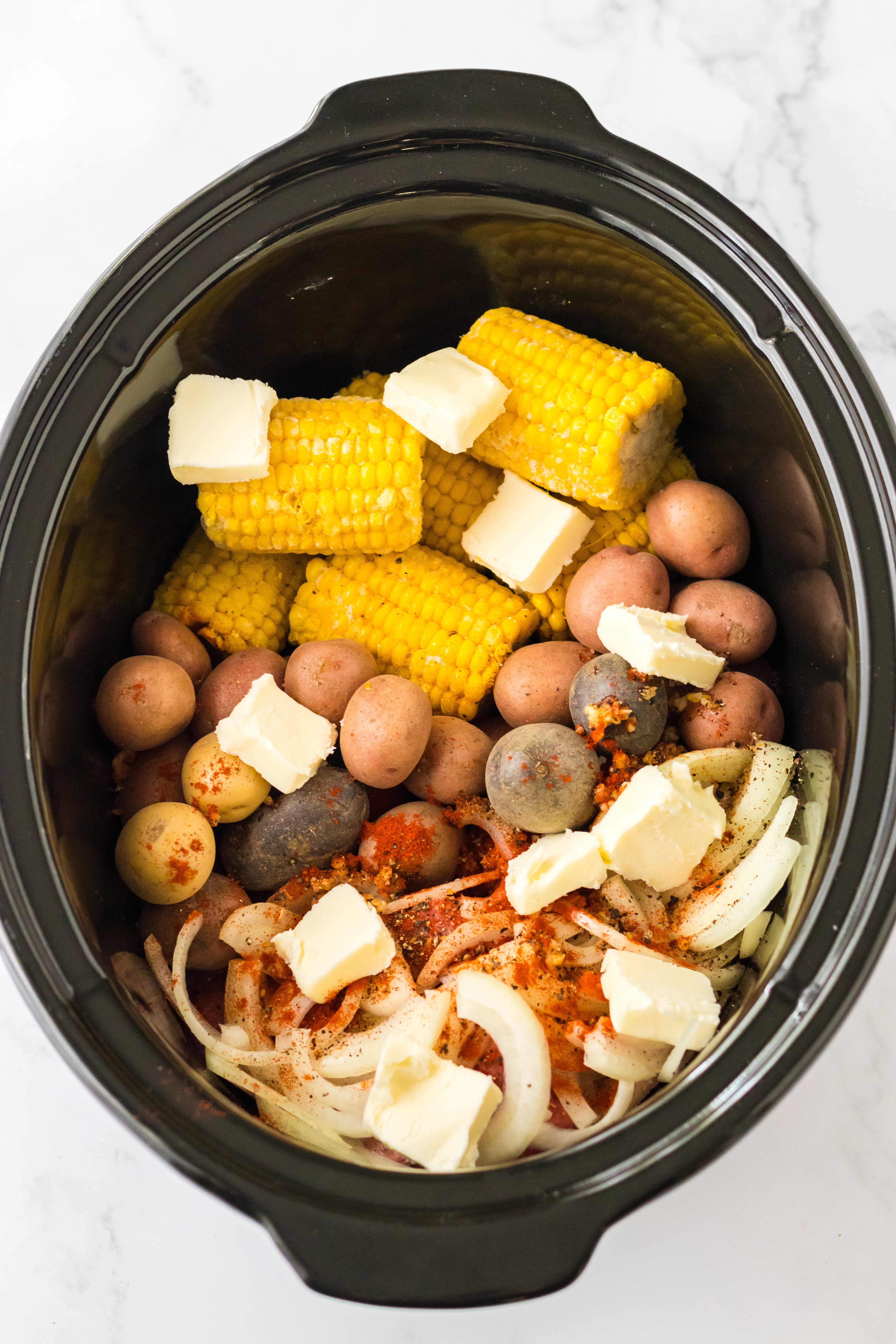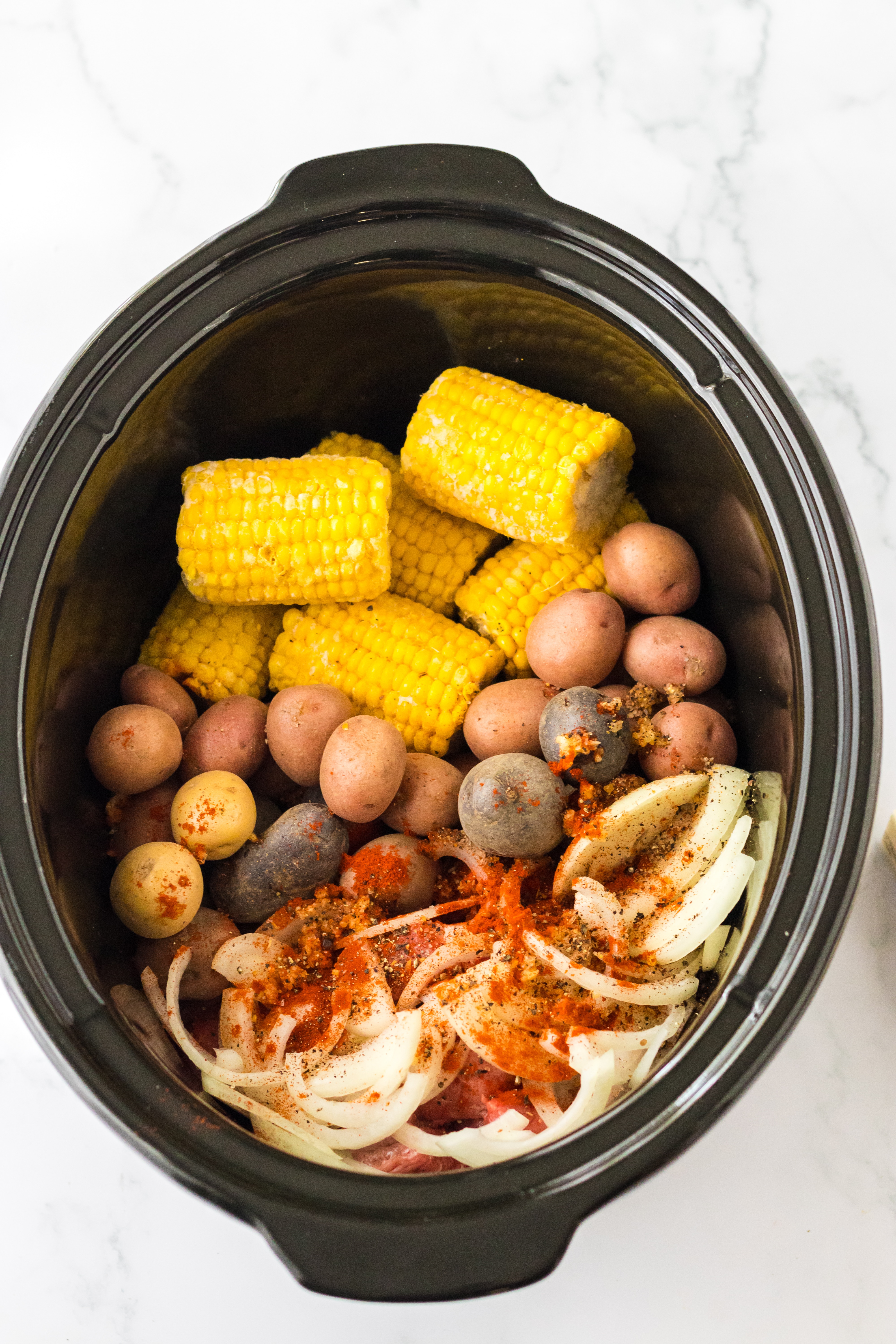 - Add the corn to the slow cooker.