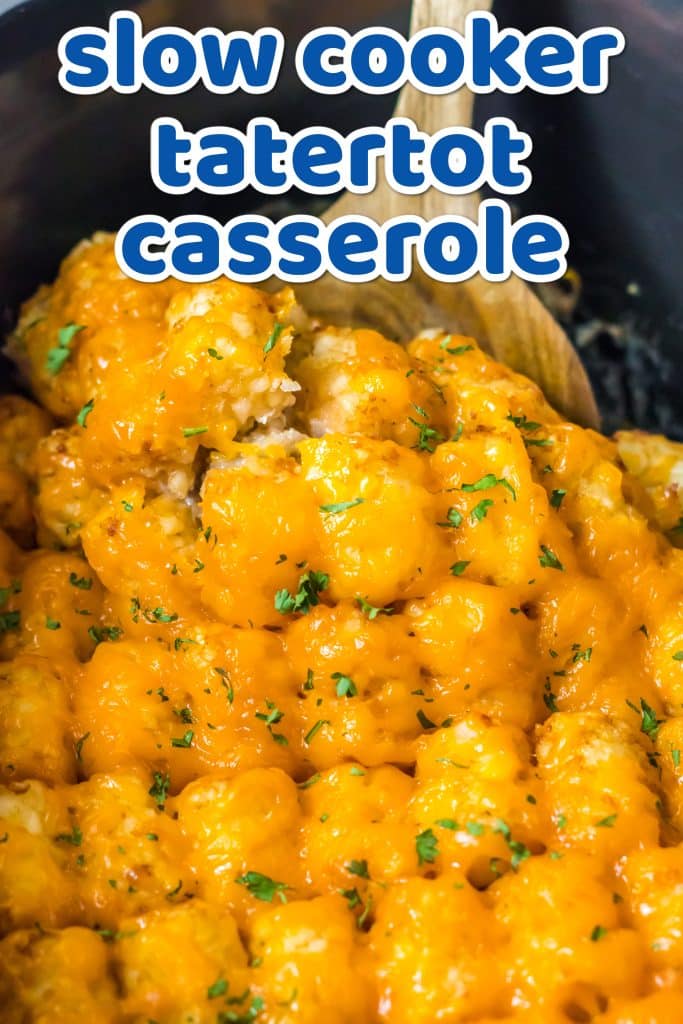 This Slow Cooker Tatertot Casserole is always a crowd-pleaser.