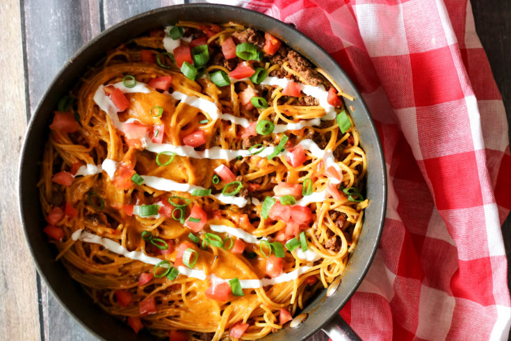 YUM!! I have never made a taco spaghetti skillet before, but I’m definitely up for the challenge! I’m sure only good things could come from mixing two tasty foods into one :)
