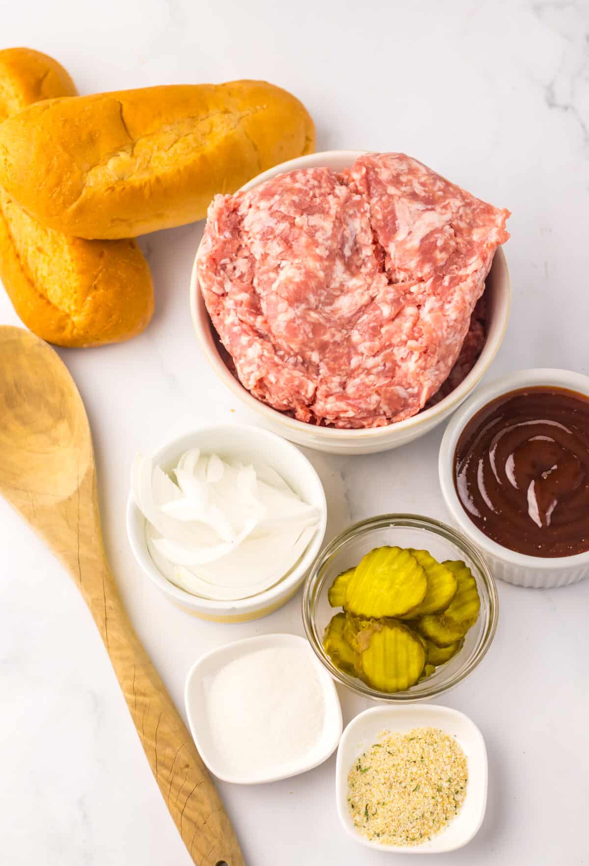 Look for 80/20 ground pork so the patties stay juicy and flavorful. Avoid lean pork here.1 teaspoon sugar