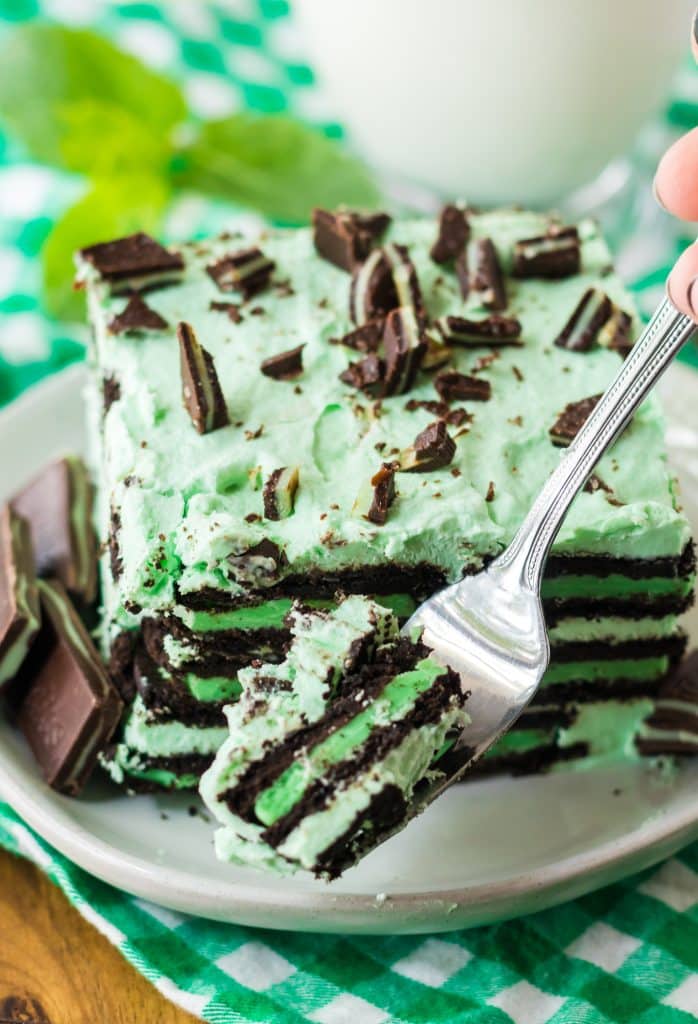 This Mint Chocolate Icebox Cake is such a fabulous cake for summer! It is no bake and layers mint sandwich cookies with a delicious mint cream. This sits in the freezer and becomes a delicious, refreshing cake that everyone will love.