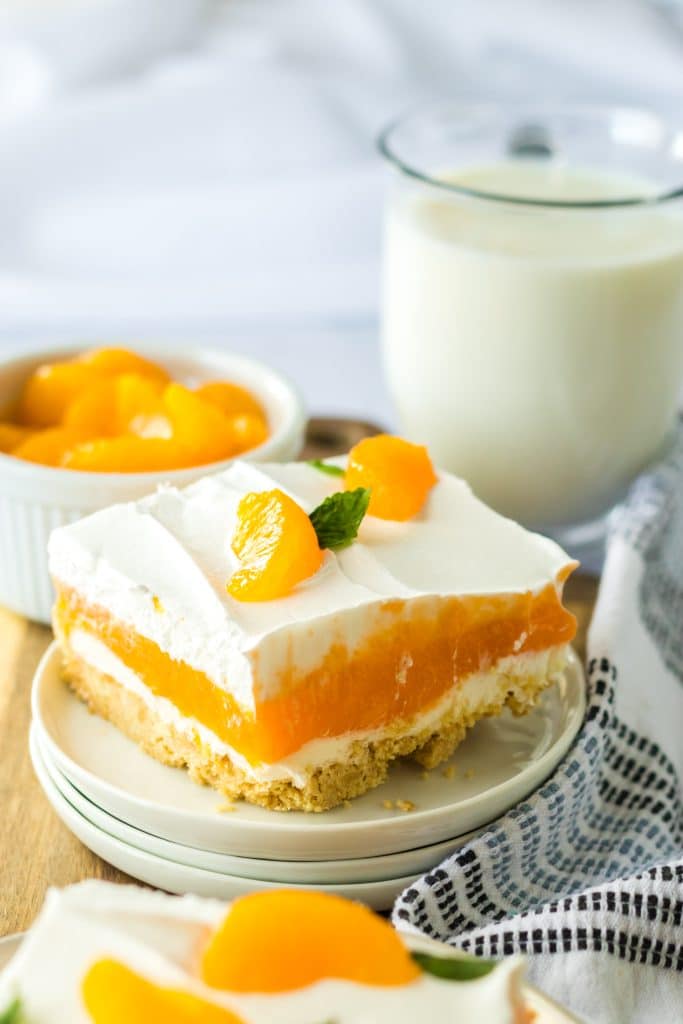 No Bake Creamsicle Lush Cake is your favorite ice cream truck treat made into a spectacular dessert perfect for the warmer months. No need to turn the oven on to create this layered dessert with layers of flavors. Vanilla pudding, orange jello, and a cream cheese layer sit on top of a vanilla cookie crust. This one is a showstopper for sure!