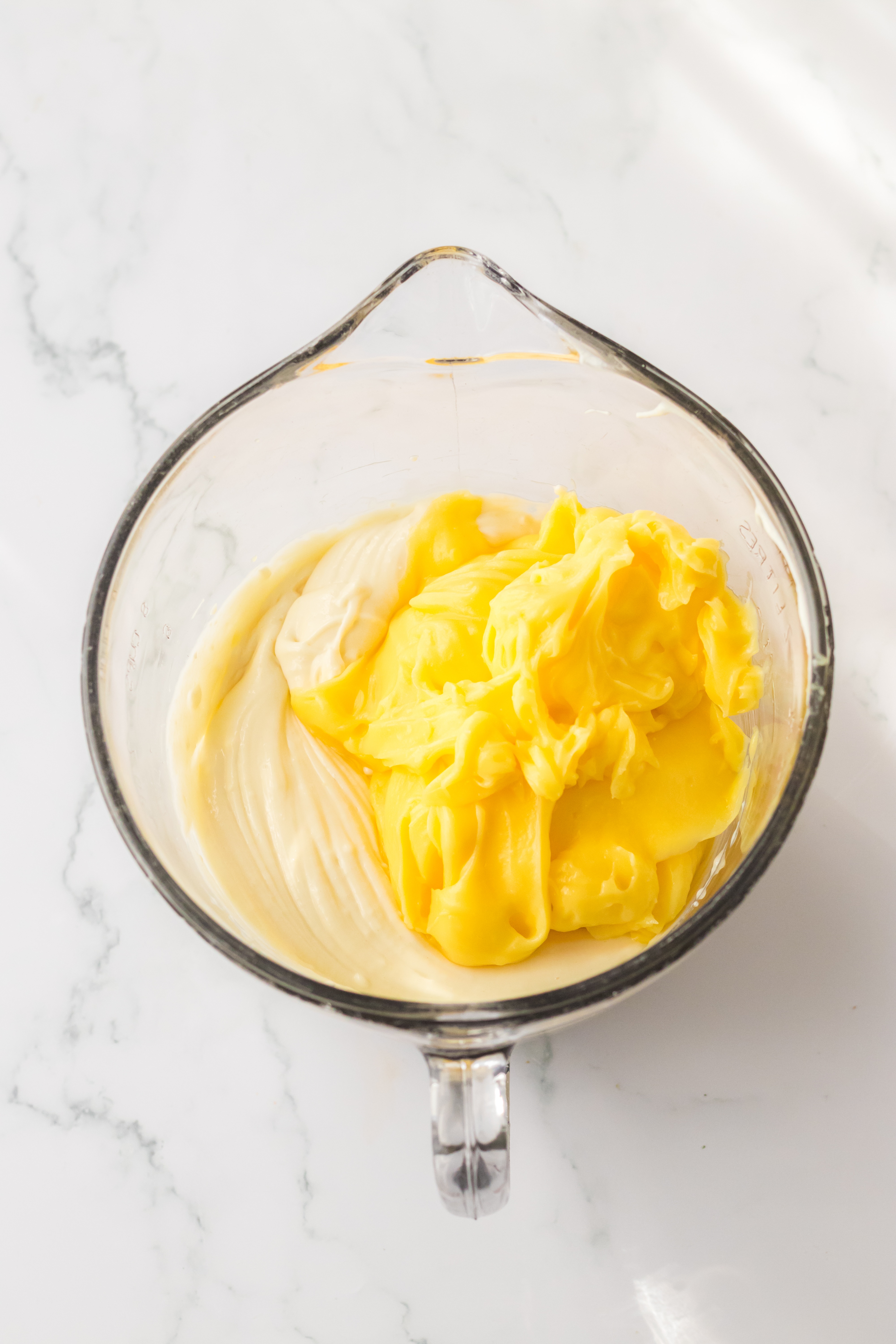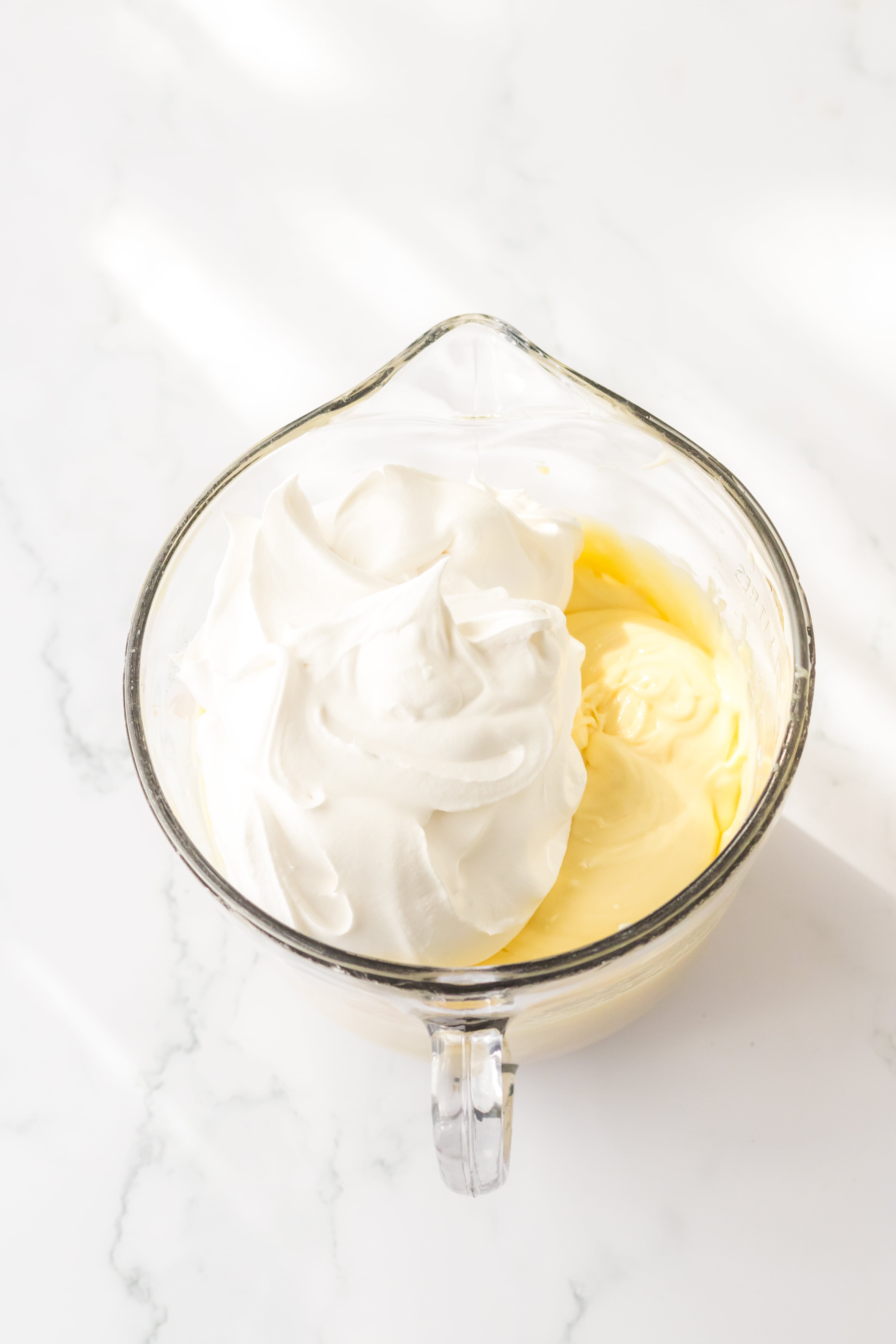 9. Fold one container of whipped topping into the banana pudding mixture.